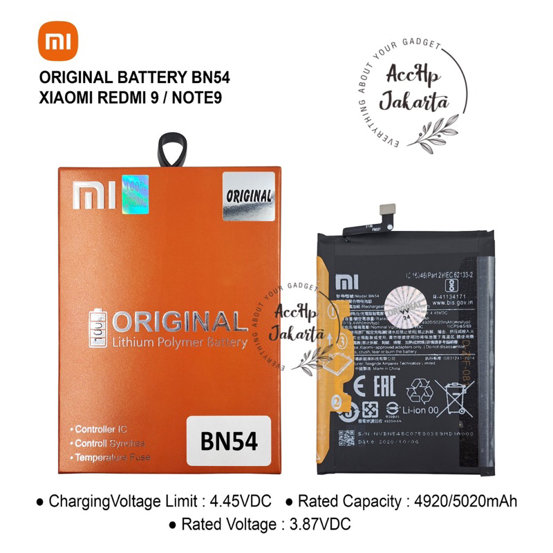 BATERAI Batre Redmi 9 / Redmi Note 9 Redmi 10X 4G BN 54 BN54 Batrei Batrai ORIGINAL