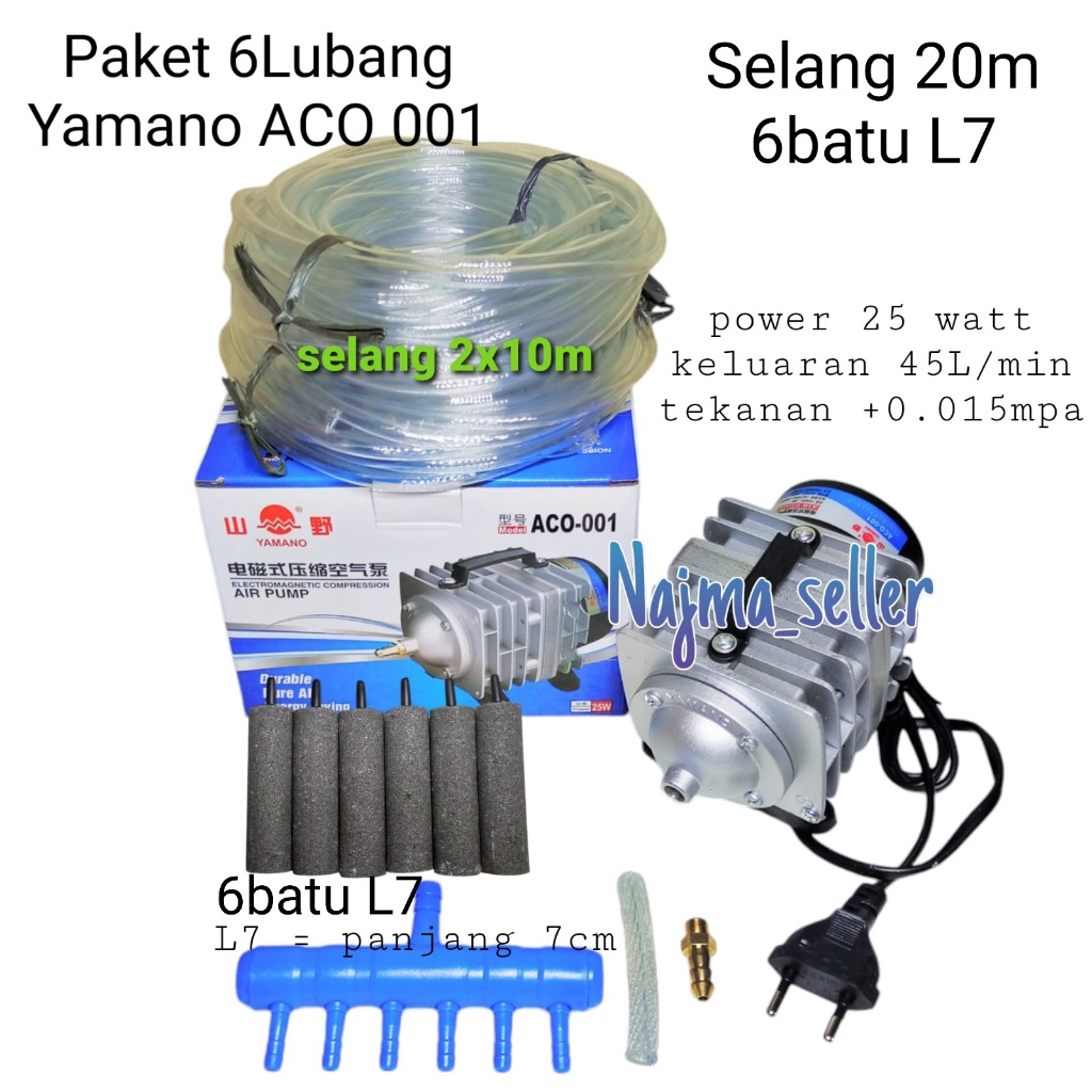 Paket Aerator Blower Yamano ACO 001 6 Lubang. 25w, 45L/min. tekanan 0,015Mps