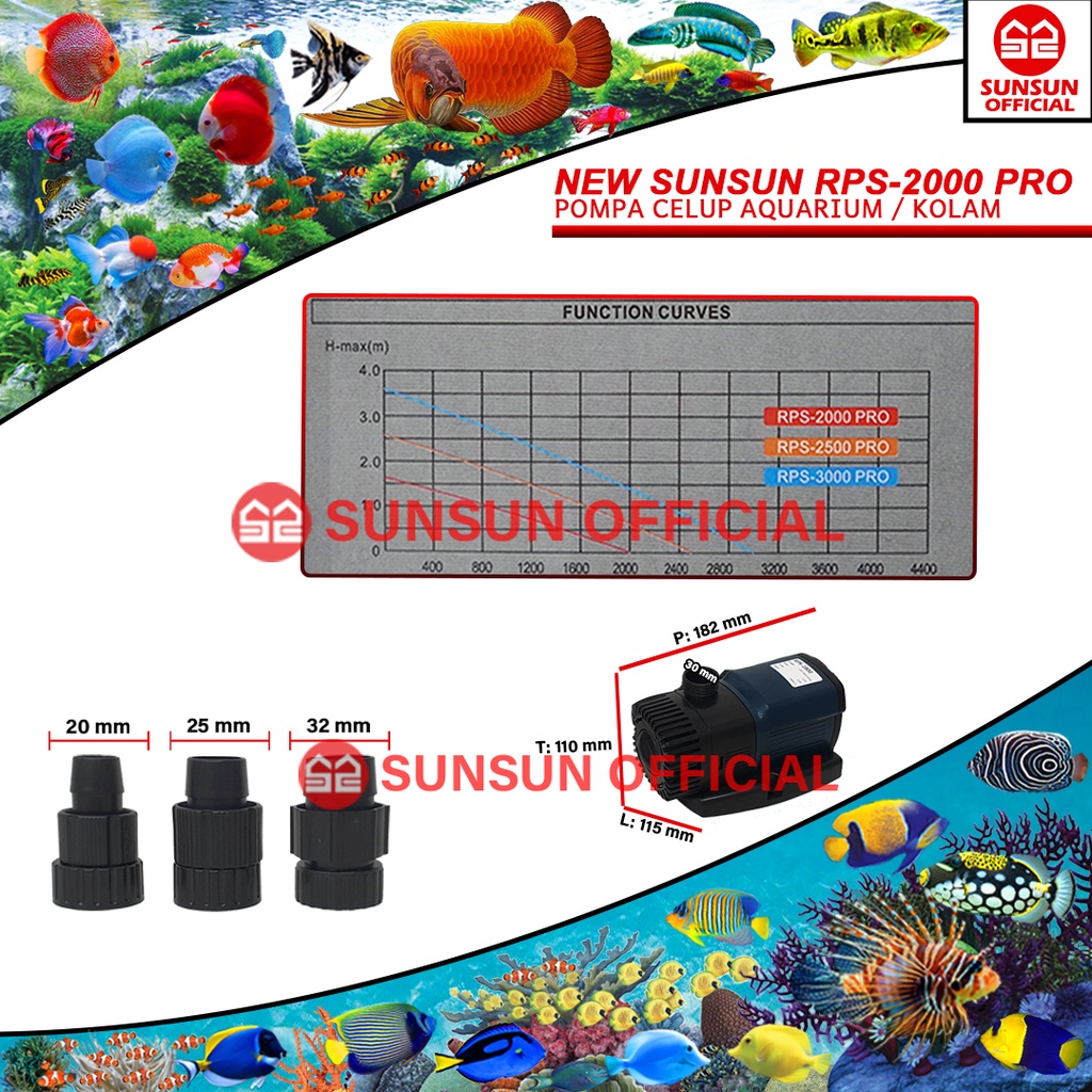 NEW SUNSUN RPS 2000/2500/3000PRO Pompa Air Celup Kolam Aquarium