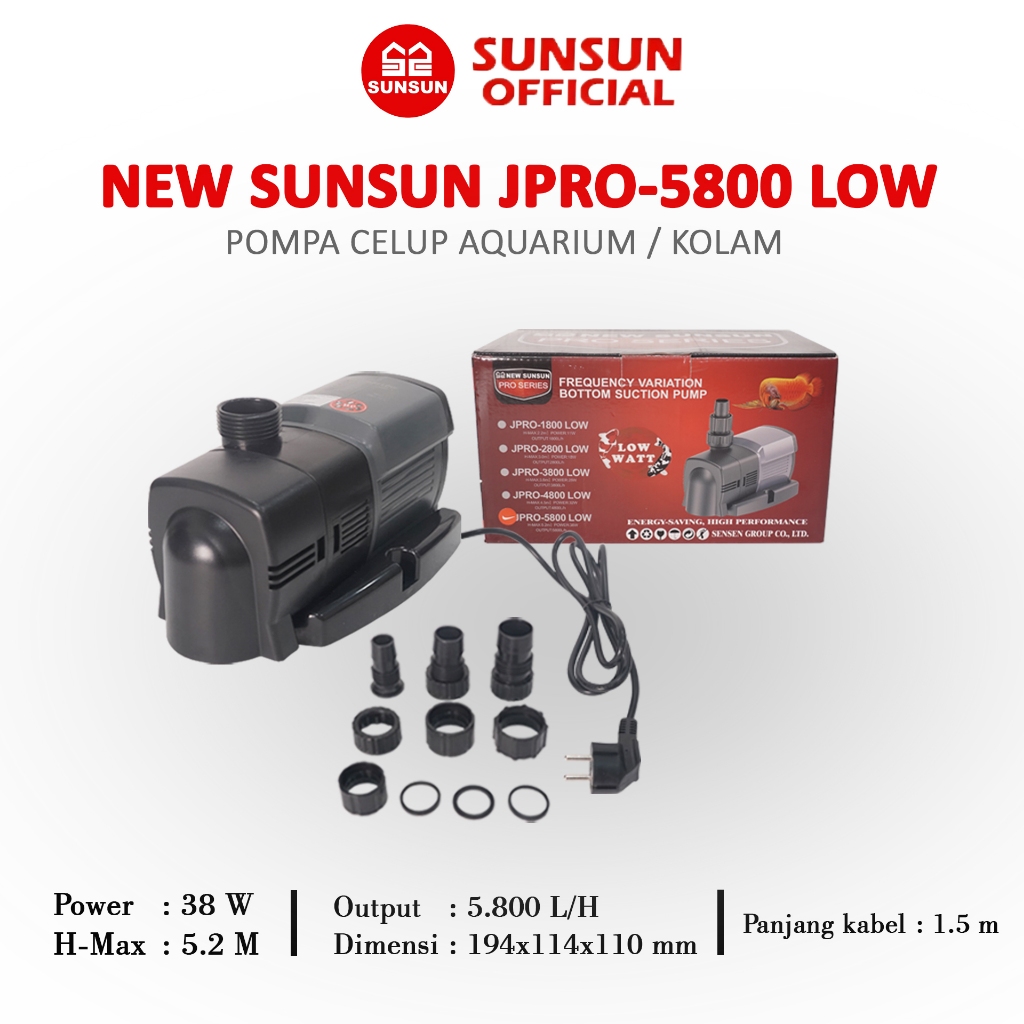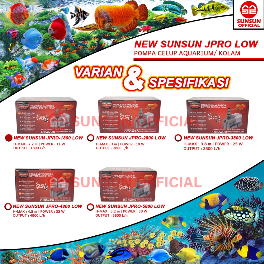 NEW SUNSUN JPRO 1800/2800/3800/4800/5800 LOW Pompa Celup Kolam Aquarium