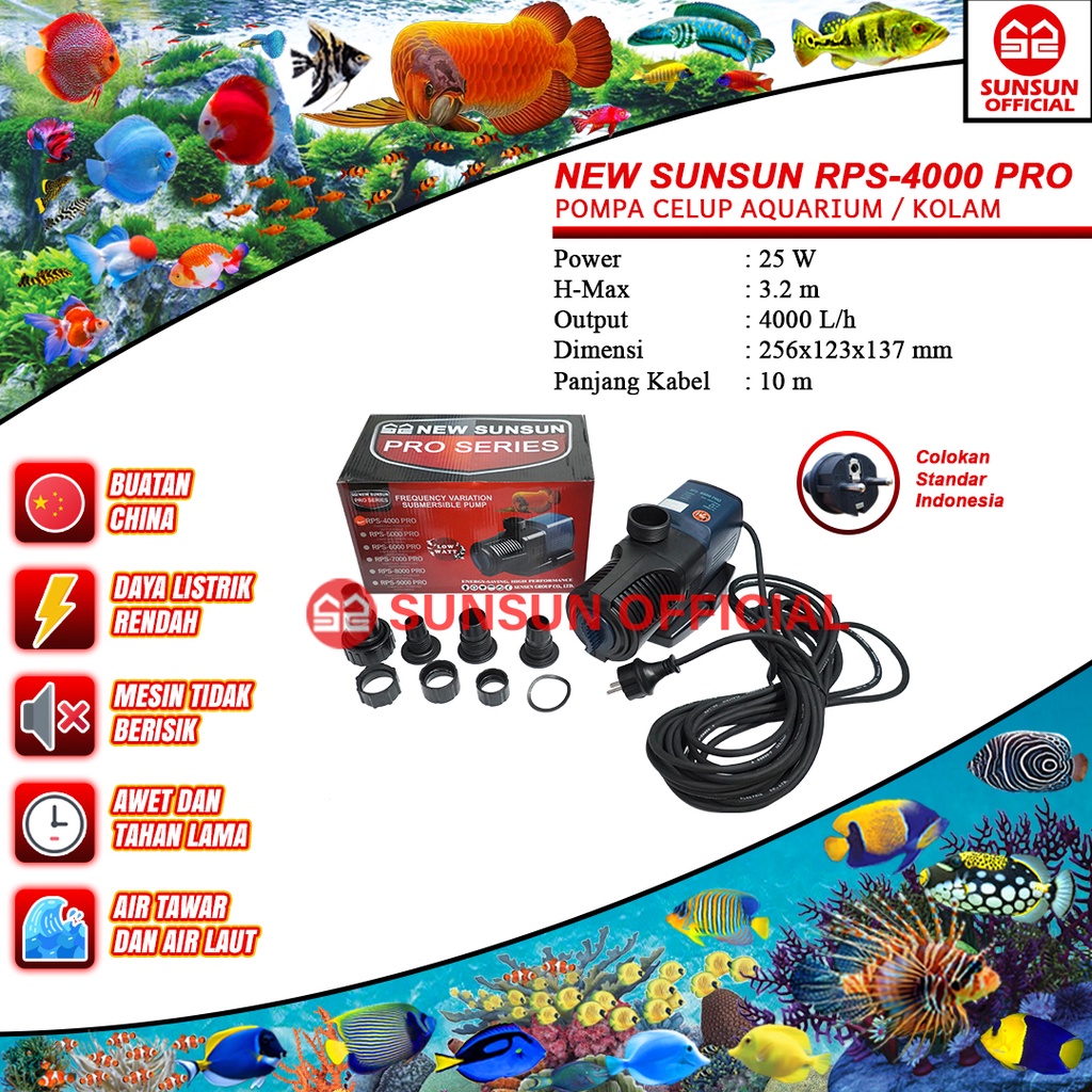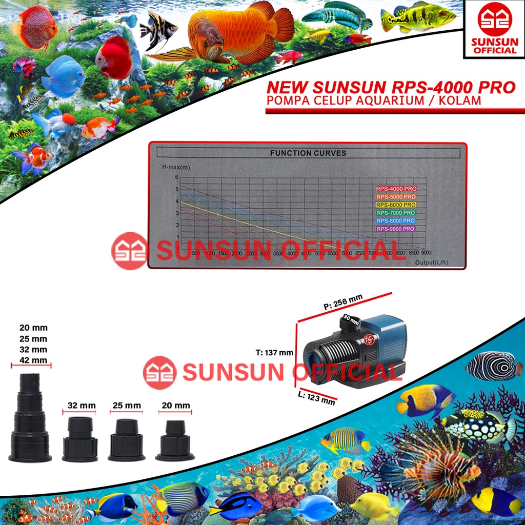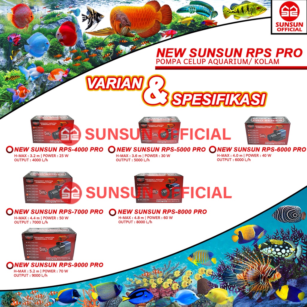 NEW SUNSUN RPS 4000/5000/6000/7000 PRO Pompa Air Celup Kolam Aquarium