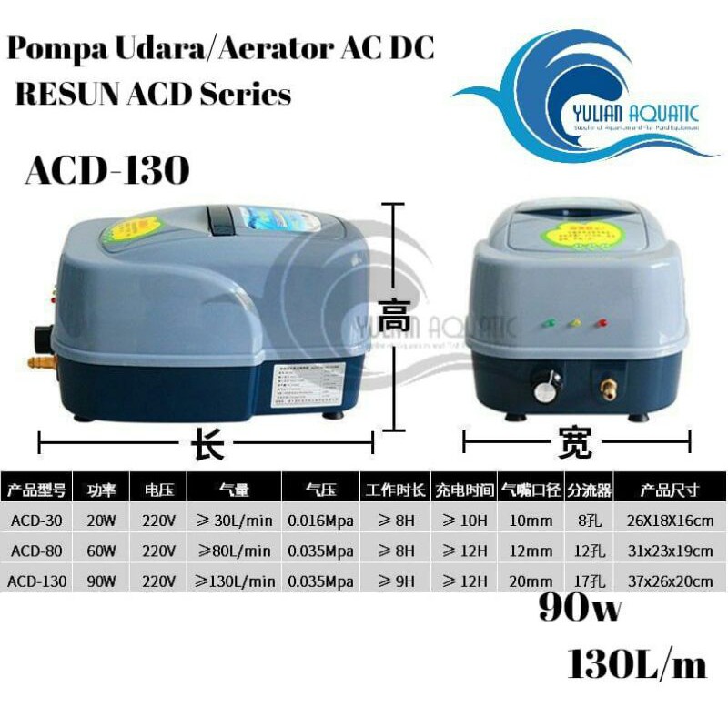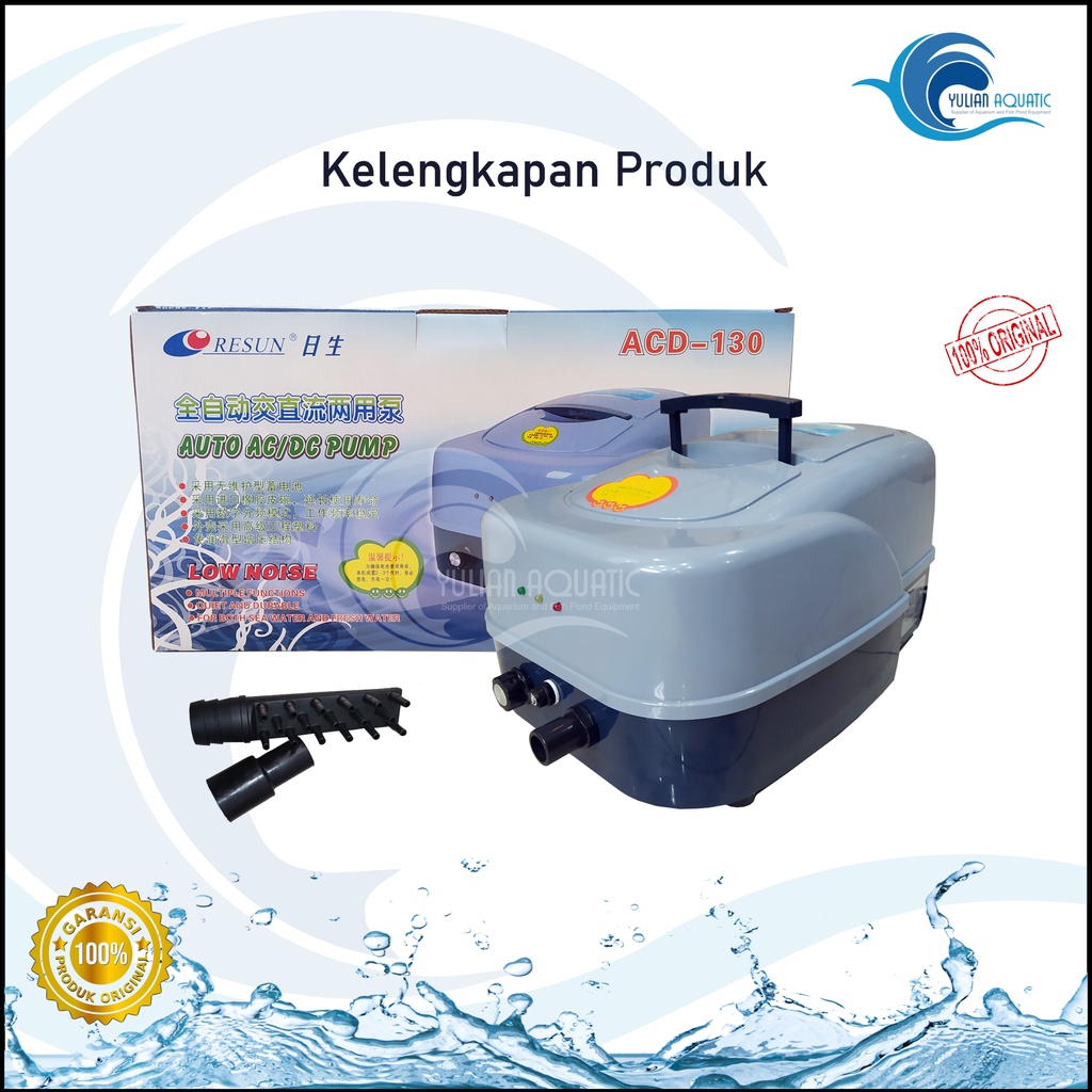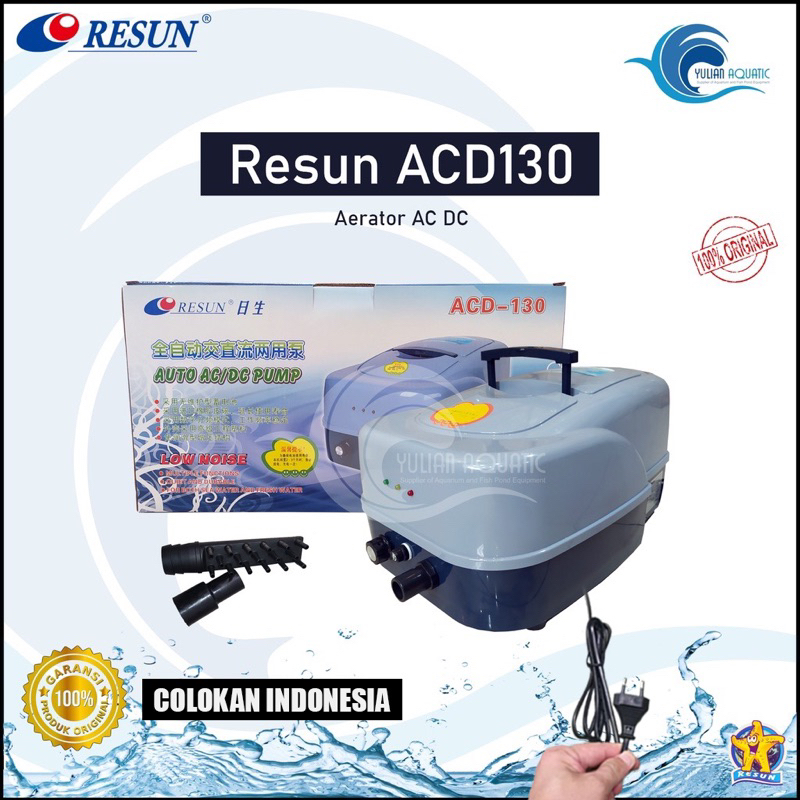 Aerator Ac Dc Resun ACD 130 Colokan Indonesia Pompa Udara Otomatis Baterai Oksigen Bioflok
