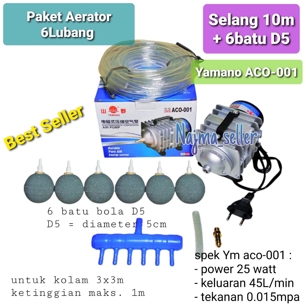Paket Aerator Kolam 6 Lubang Yamano ACO-001, airstone Bola. Paket Lengkap Aerator kolam dan aquarium.