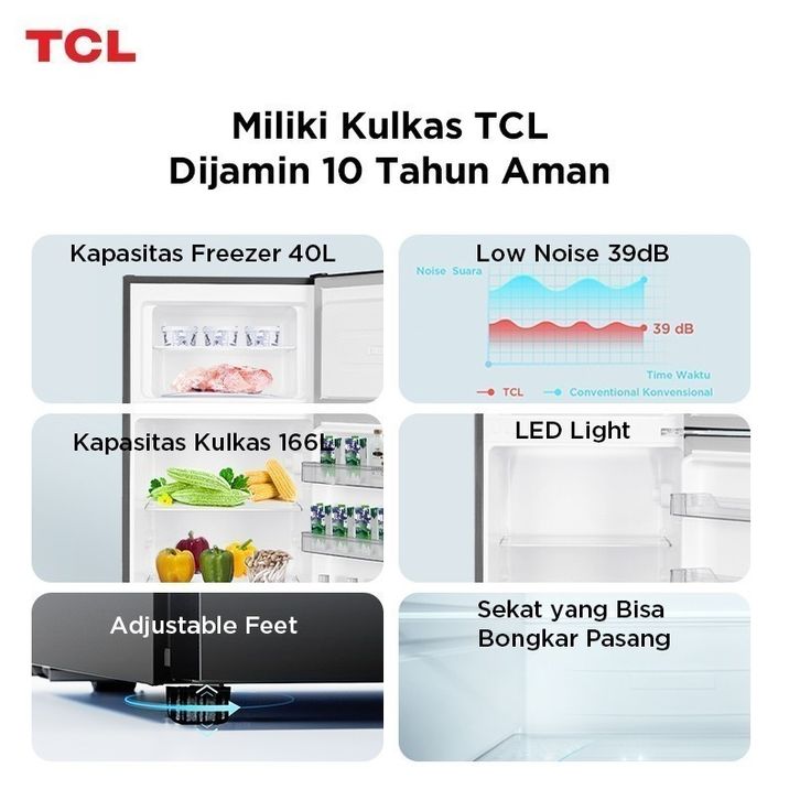 [Star] Kulkas 2 Pintu TCL Big(F235-A50) Kapasitas 206L Rak Freezer Terpisah Senyap Dingin Cepat Merata Berkualitas Murah
