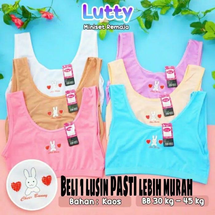 (3 / 6 Pcs) Miniset Anak Remaja Perempuan Lutty Sport Bra Atasan Dalaman Tanpa Busa Warna Gelap Wanita Katun 25-40 Kg -