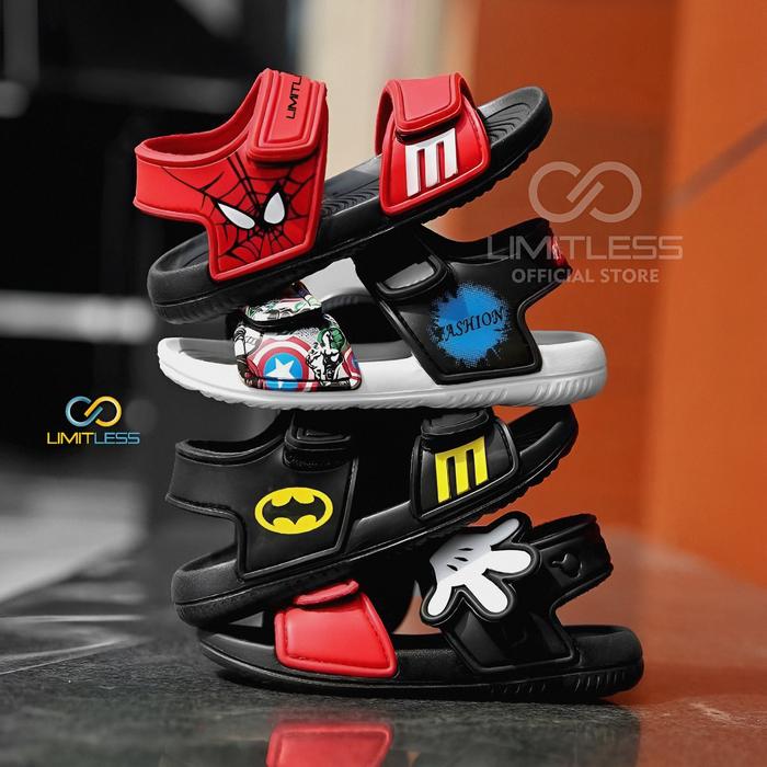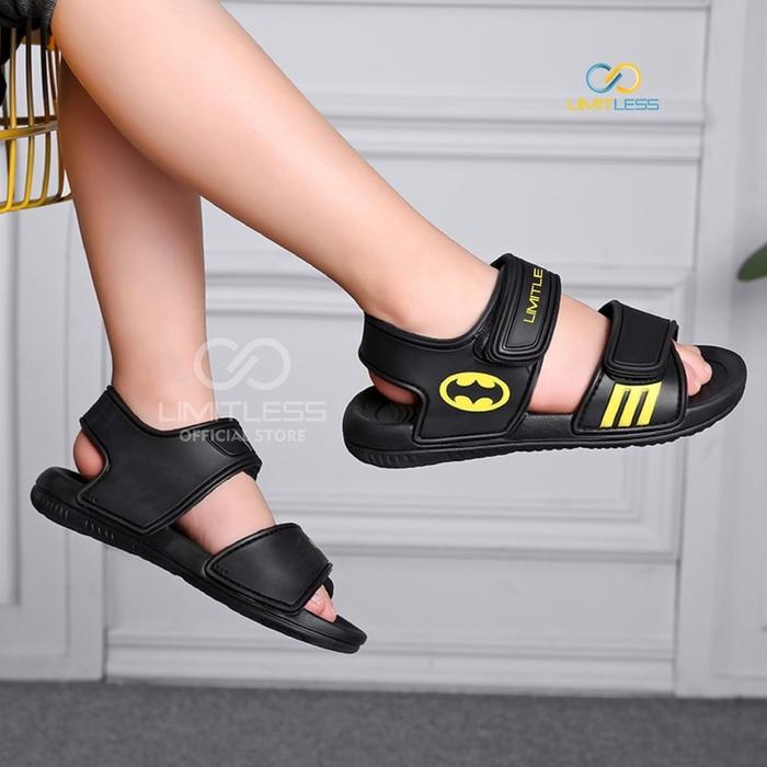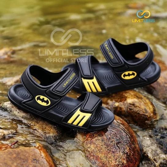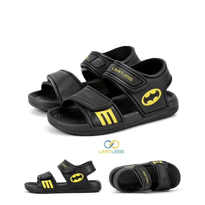Sepatu Sandal Anak Laki Karakter Lucu Lentur Ringan Anti Slip Kaki Terbaru Fashion - Bat-Man Hitam, 34