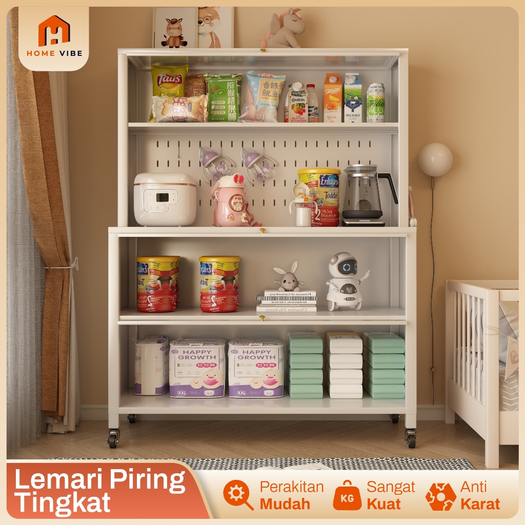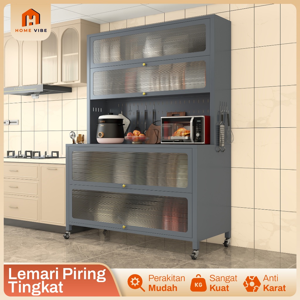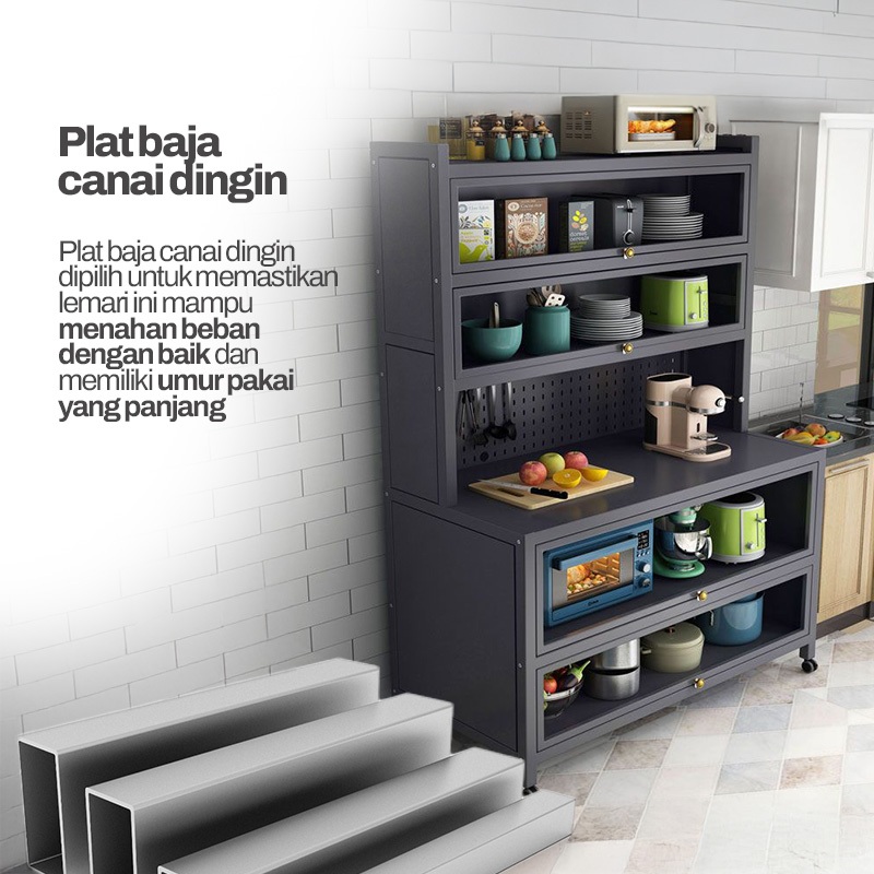 Rak Dapur Full Besi Lemari Rak Piring Susun Rak Oven Microwave Minimalis Lemari Rak Susun Serbaguna