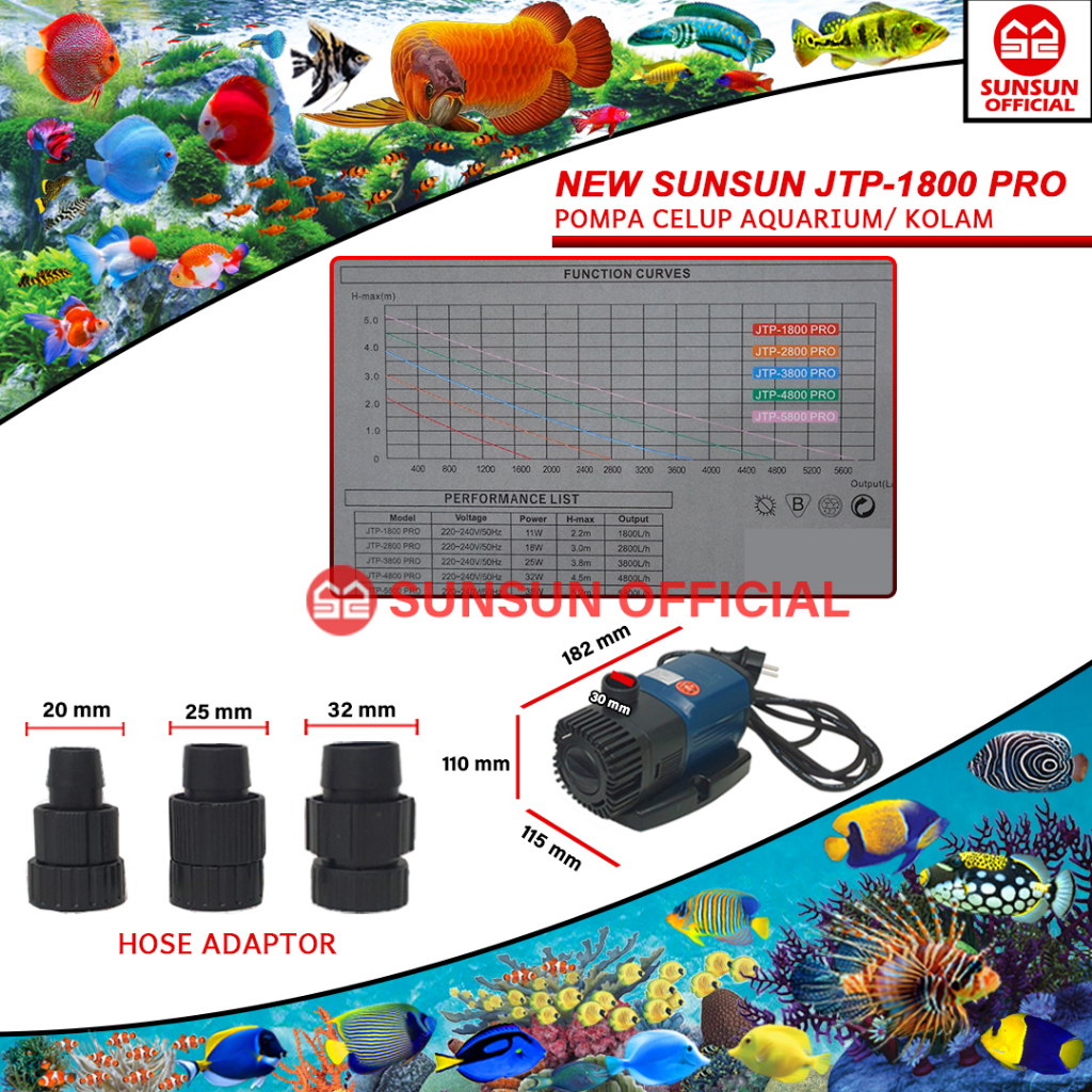 NEW SUNSUN JTP 1800/2800 PRO Series Pompa Celup Kolam/Aquarium