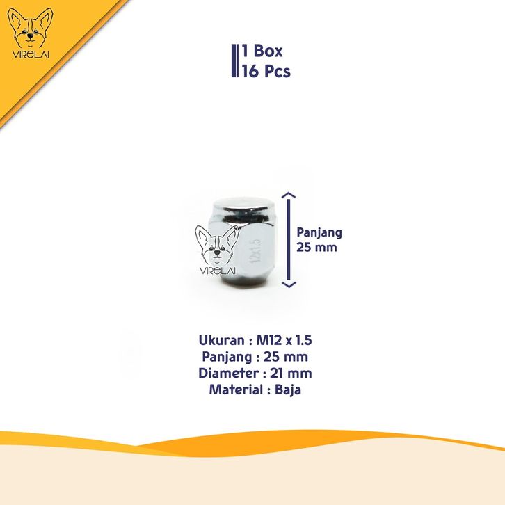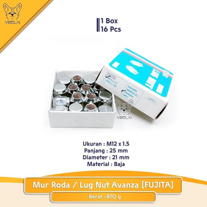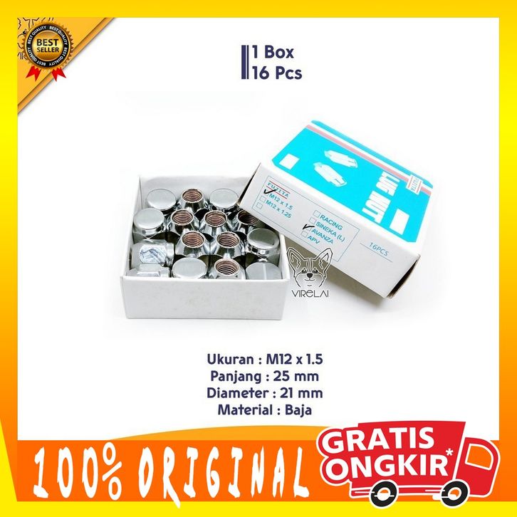 [16 Pcs] Mur Roda Fujita lug nut Avanza / Xenia / Grand Max / Luxio M12 x 1.5