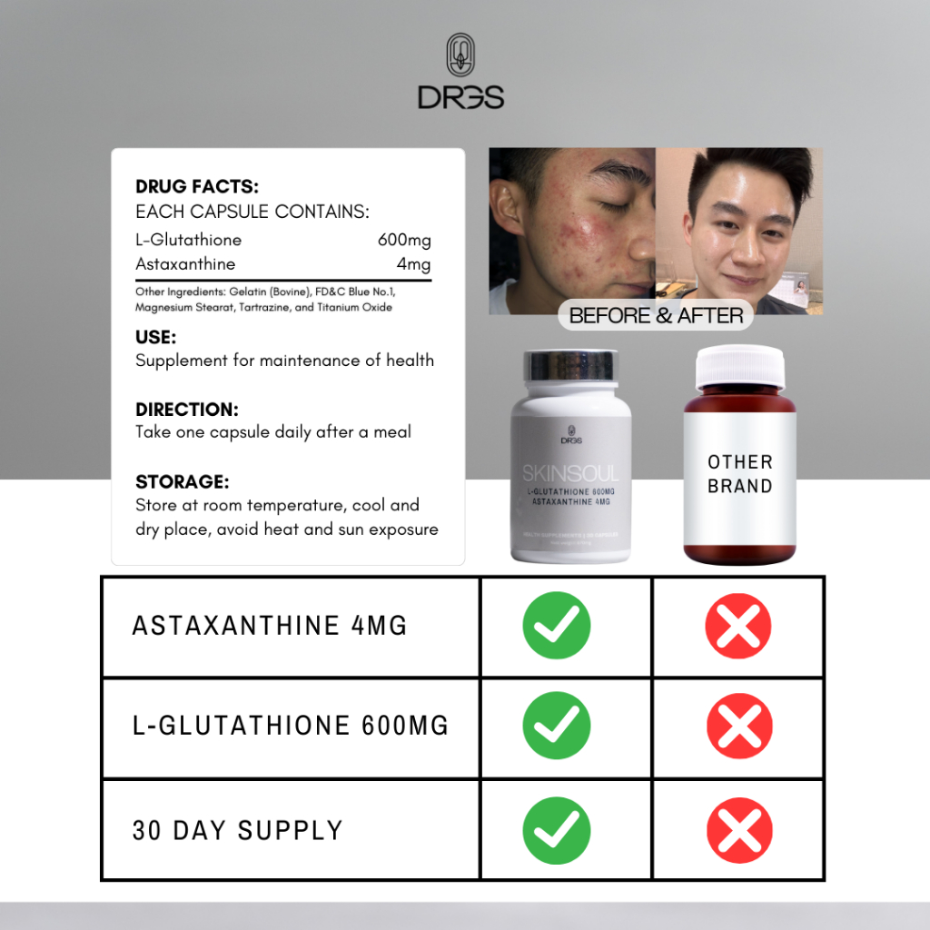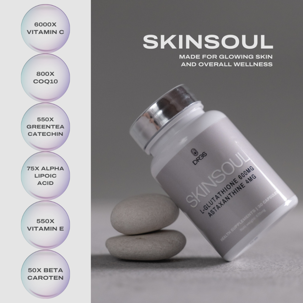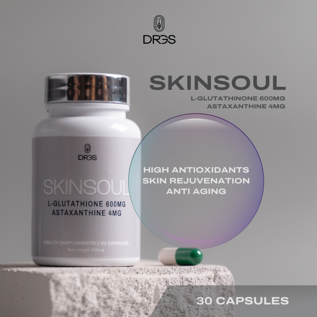 Astaxanthin Glutathione Suplemen Kesehatan dan Kecantikan Kulit | DRGS SKINSOUL | Suplemen Mencerahkan Kulit | Suplemen Antioksidan | Suplemen Jerawat | Suplemen Mencegah Penuaan Dini