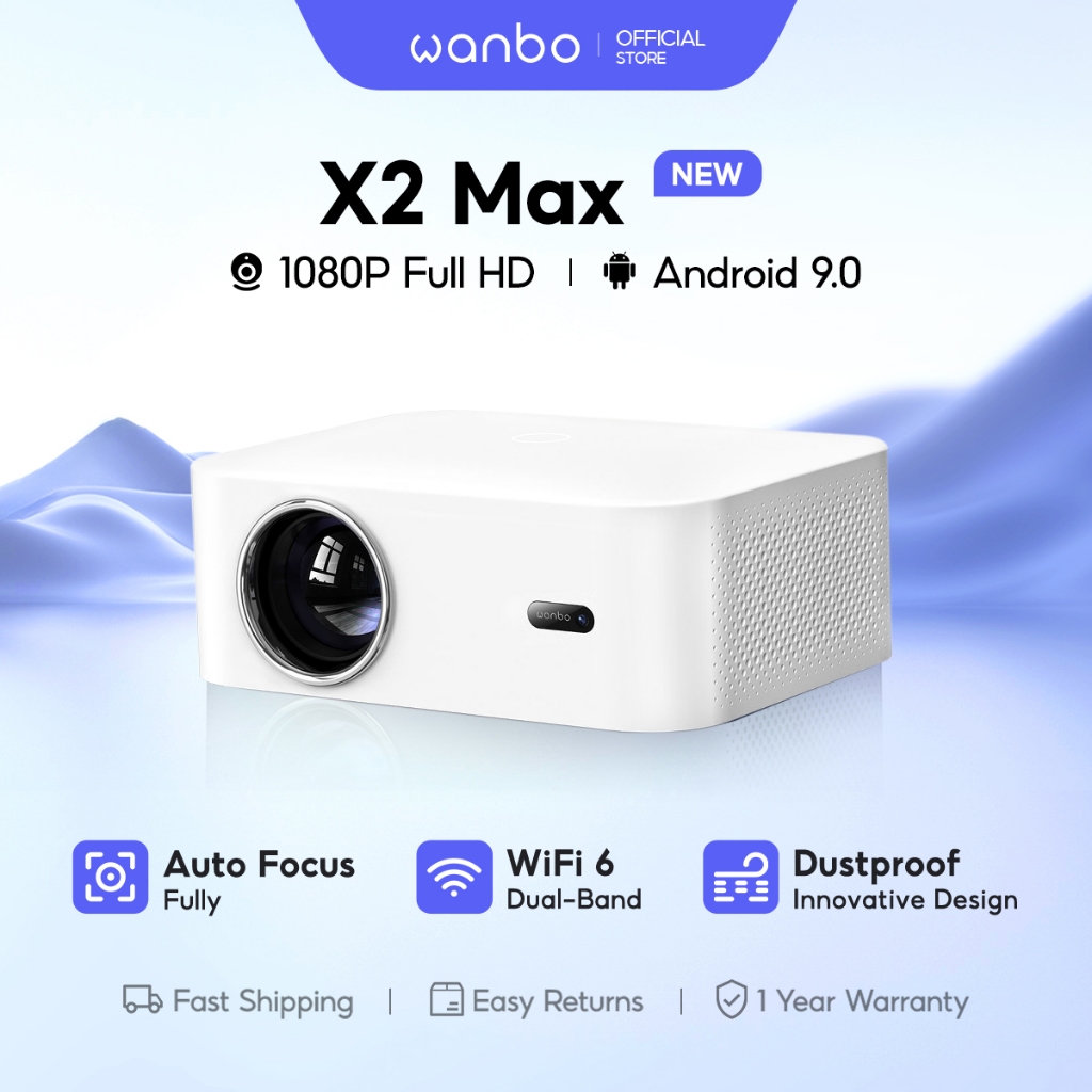 Wanbo X2 Max Proyektor 5W*2 Speakers 450 ANSI Lumens Auto-focus 1080P Wanbo X2 Max Portable Projector