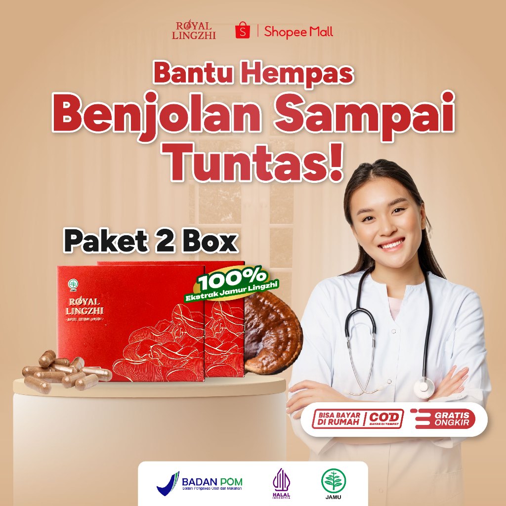 Royal Lingzhi Kapsul Suplemen Herbal Obat Ampuh Paket Isi 2 Box Atasi Kanker Payudara Serviks Prostat Paru-paru Penghambat Tumor
