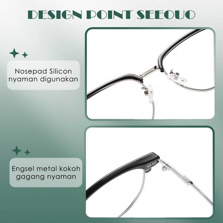Kacamata Antiradiasi Blueray Model Kotak Simple Half Stylish Bahan TR90+Metal Pria Wanita Bisa Minus 12621
