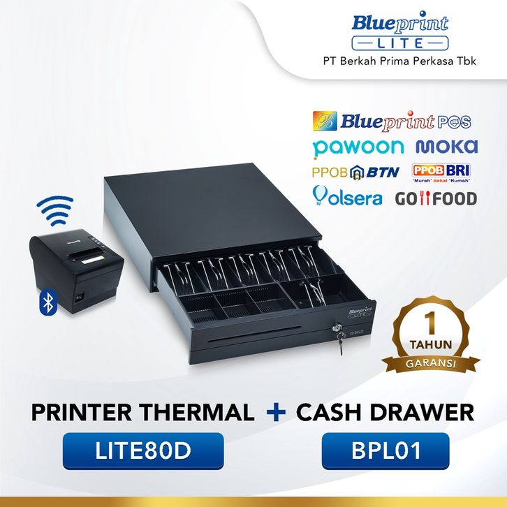 Paket Alat Kasir BLUEPRINT Printer Thermal LITE80D + Cash Drawer CD-BPL01 40x42x11 Cm