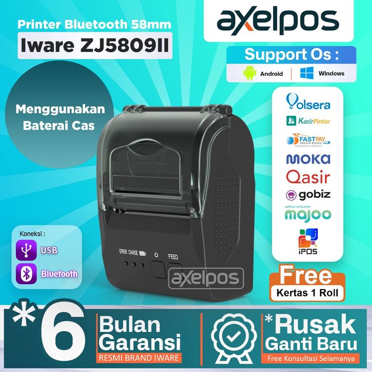 Axelpos Mini Printer Bluetooth Thermal Kasir 58mm Iware ZJ5809II