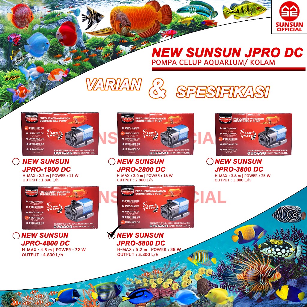 NEW SUNSUN JPRO 5800 DC POMPA CELUP KOLAM AQUARIUM