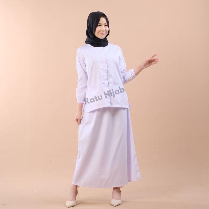 Baju Perawat Putih Big Size Wanita Lengan Panjang Dokter Petugas Nakes Bahan American Drill Celana Kerja - Full Kancing