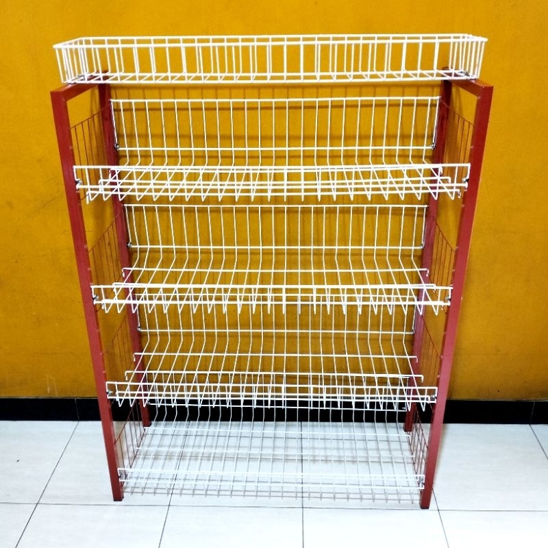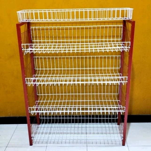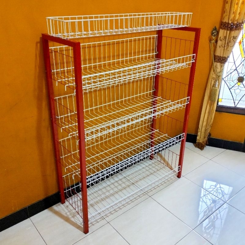 Rak Ciki Besi/ Rak Serbaguna Mini Market / Rak Display Roda Susun 5 Tebal / Rak Susun 5 Besi