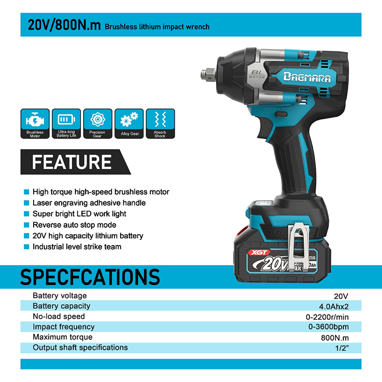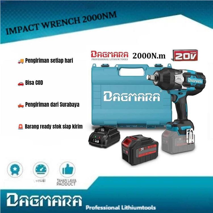 Dagmara 2000Nm Impact Wrench Mesin Pembuka Baut Bor Baterai High Power Drive Ratchet Socket CVT Ban Truck Bor Impek