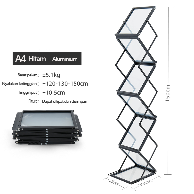 Rak Brosur 4 /7 Susun Rak Besi/Aluminium Hitam /Perak Nama