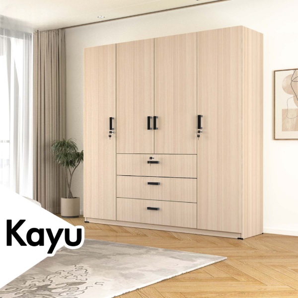 [Mall] Lemari Pakaian 4 Pintu Kayu Jumbo Besar Wardrobe Modern Minimalis Super Kokoh Terlaris Best Quality