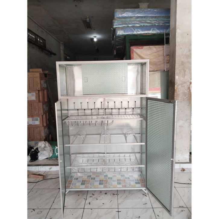 rak piring full box /full box 3 pt holo sliding atas/fullbox 3 pintu alumunium/ rak piring murah