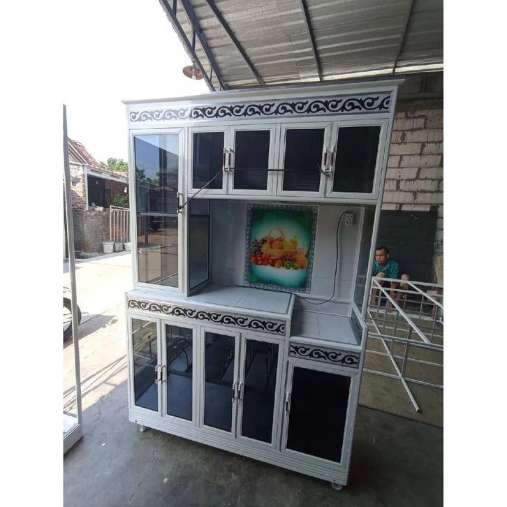 15045180rak piring 5 pintu gendong 1 tiang alumunium holo/rak piring/lemari piring/rak dapur/rak piring kaca