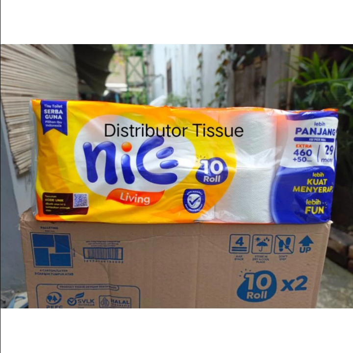 PREMIUM Tisu Toilet Nice 10 Roll 460+50 Serat Alami