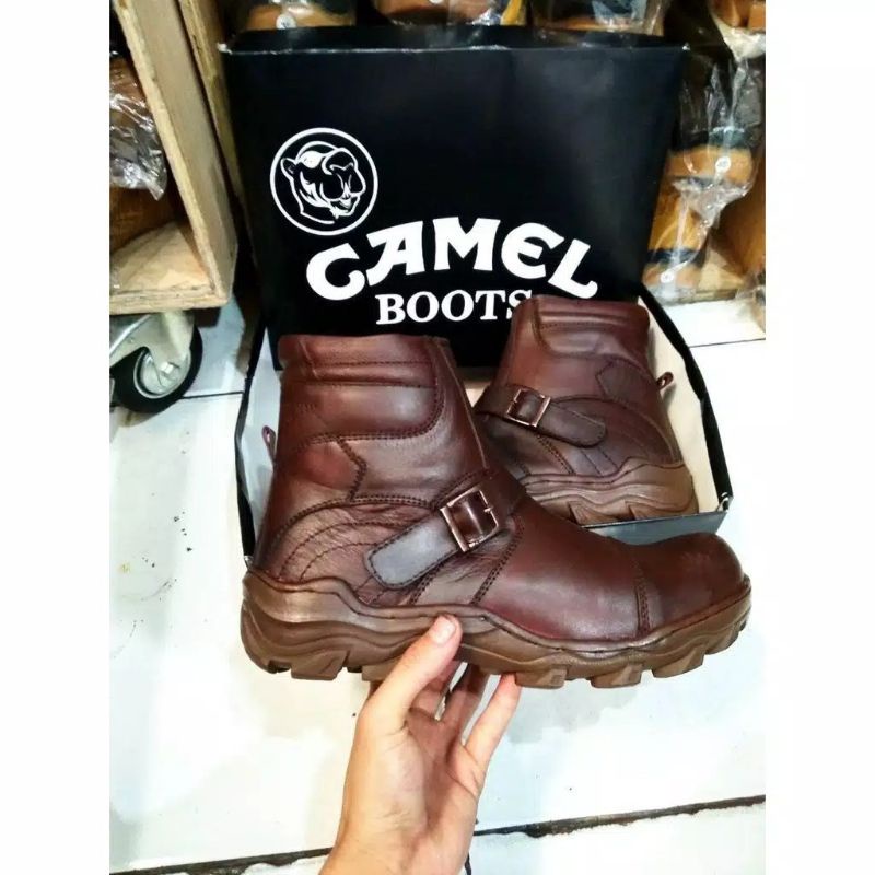 Sepatu kerja pria outdoor sepatu boots safety ujung besi sepatu safety boots pria resleting ujung besi kulit asli