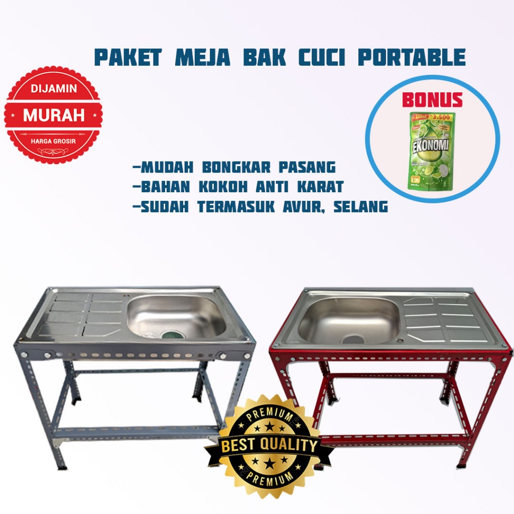 Ekonomi Paket Wastafel Tempat Cucian Piring Meja Cuci Piring Portable Bak Cuci Piring Portable Bongkar Pasang Tebal Anti Karat Stainless Steel