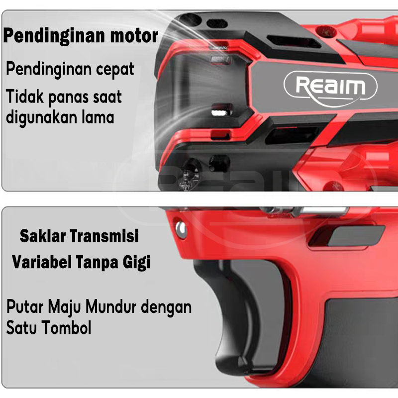 Reaim Impact Wrench Cordless 888V Brushless Bor Impact Baterai Mesin Impact Buka Baut Cordless Electric Wrench Rechargea