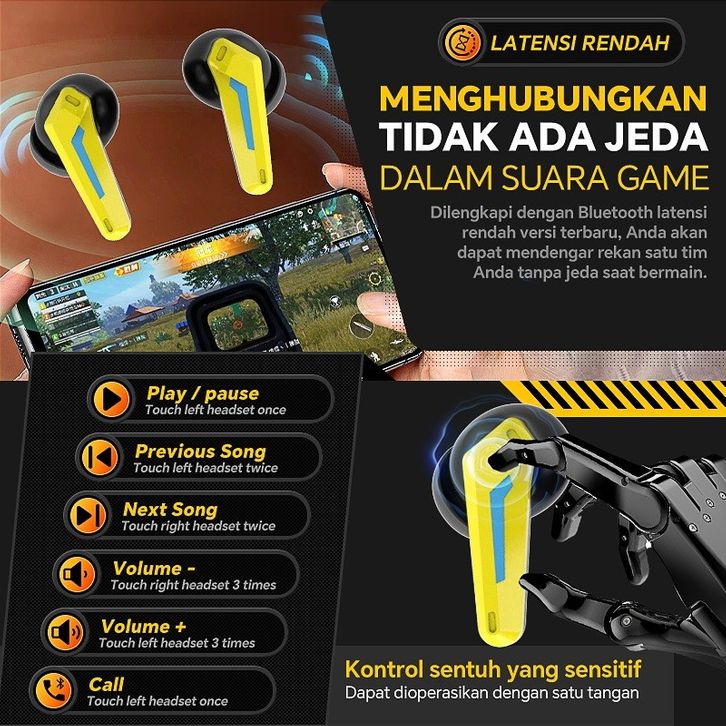 MANU Bluetooth Earphone TWS GL9 Headphone Gaming Latensi Rendah--Bluetooth 5.3