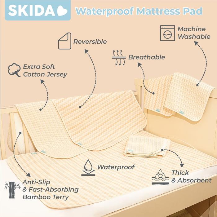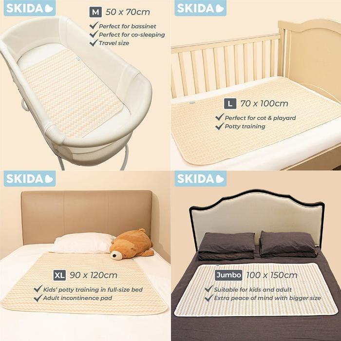 Skida Waterproof Pad Bamboo Changing Mat-Alas Ompol Perlak Bayi&Dewasa - Zigzag 50X70