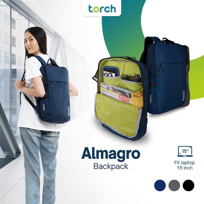 Torch Tas Ransel Kuliah Kerja Sekolah Pria Wanita Backpack Almagro - Biru+Wallet