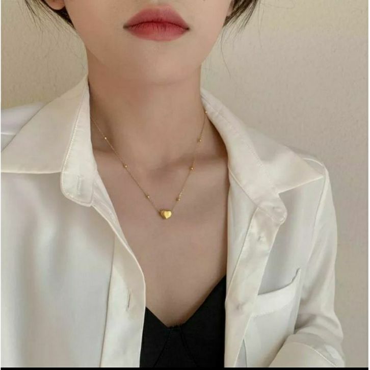 Kalung Gold Heart Dengan Bola Kecil Kalung Titanium Kalung Wanita Simple Elegan