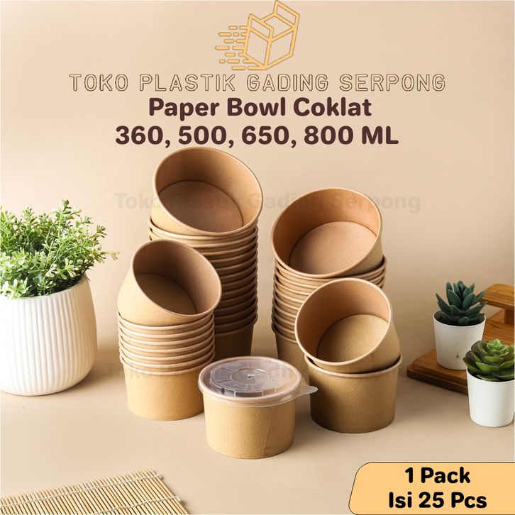 PROMO (1 PACK ISI 25PCS) Kraft Paper Bowl Semua Ukuran + Tutup / Mangkuk Kertas Ukuran 360ml, 500ml, 650ml & 800ml Cokla