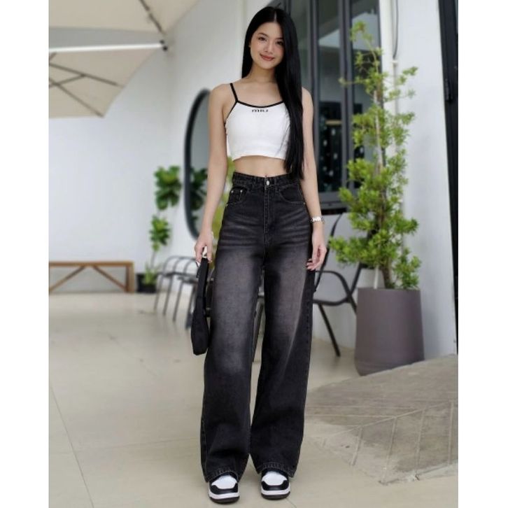 GROSIR UNISEX Highwaist Kulot Loose Baggy Jeans - Celana Kulot Jeans Retro green korean esafd
