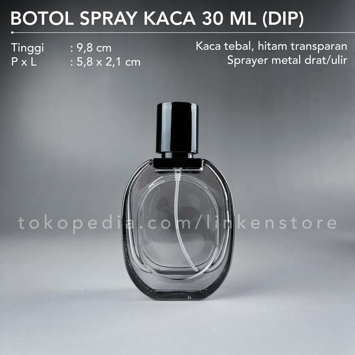 Botol Parfum 30ml Spray Kaca Tebal HITAM TRANSPARAN Oval Refill DIP - 1 pcs