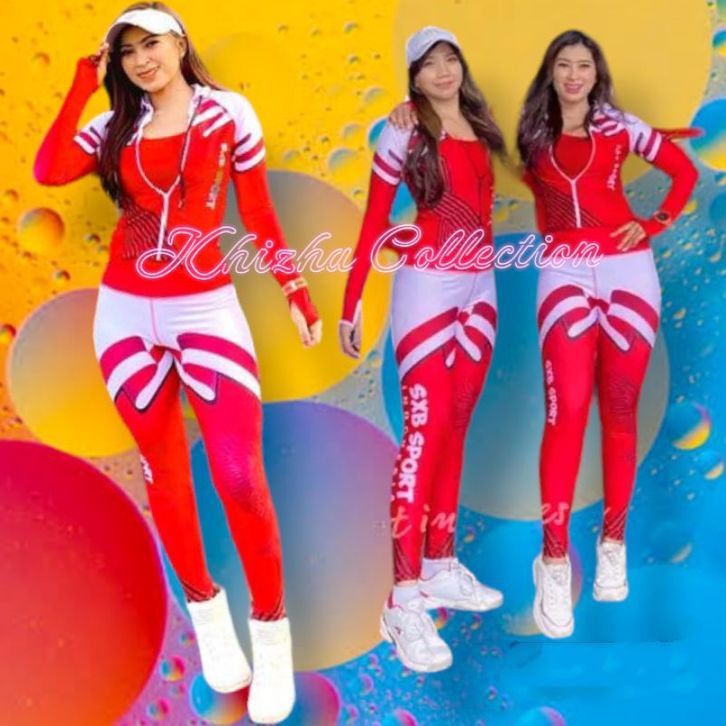 SXB SETELAN BAJU OLAHRAGA SENAM AEROBIK WANITA MOTIF MERAH PUTIH