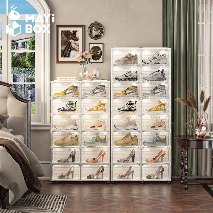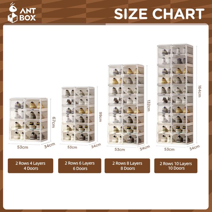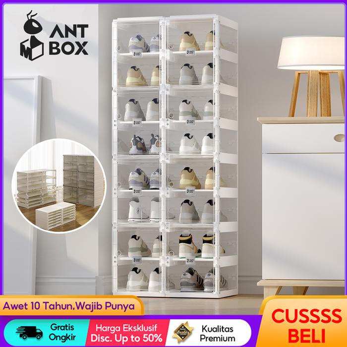 Antbox Rak Sepatu Plastik Minimalis 8Susun Organizer Kotak Sepatu Lipat Transparan Akrilik Storage Box Anti Debu Dan Mud