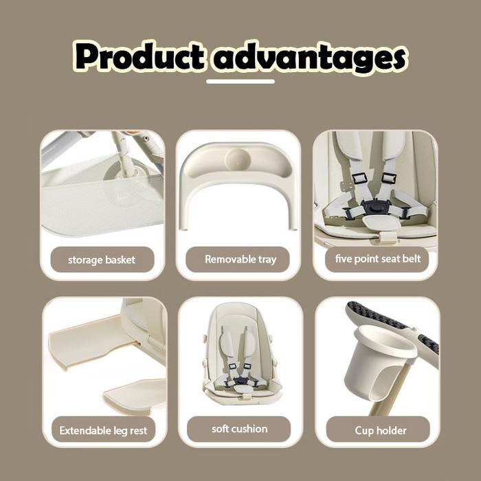 Topborn Stroller Kereta Bayi Dapat Dilipat Dengan Piring Makan Bisa Duduk Atau Berbaring Tempat Duduk Berputar 360° Port