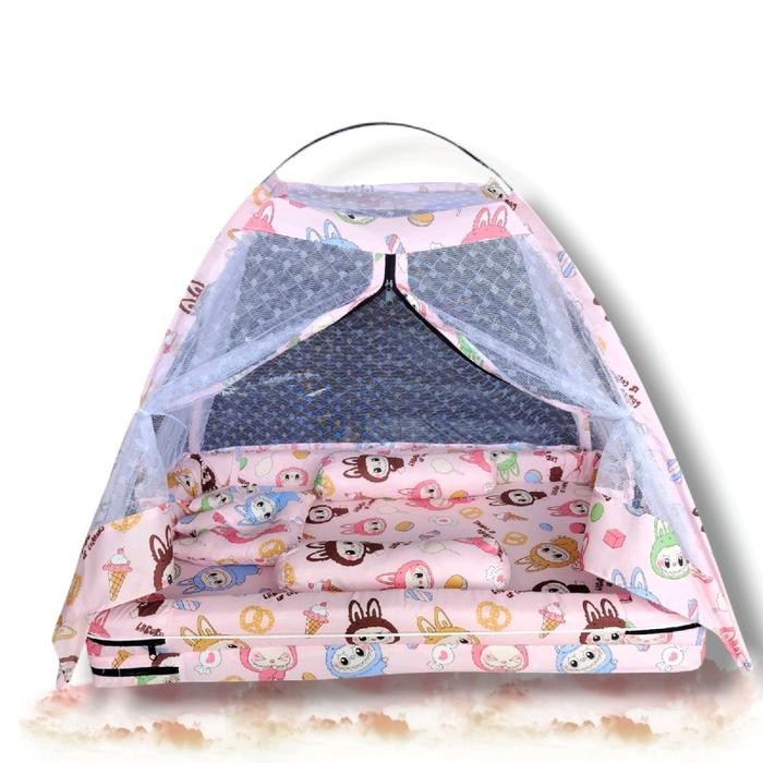 KASUR FIBER KELAMBU MOTIF LABUBU UNISEX | KASUR BAYI SET LENGKAP CEWEK COWOK TIDUR - LABUBU PINK