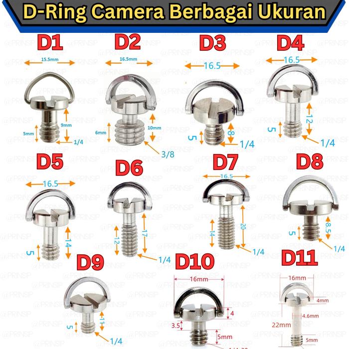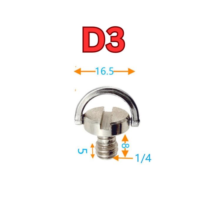 D-RING SEKRUP CAMERA 1/4 & 3/8 MALE BAUT SCREW TRIPOD MONOPOD KAMERA, QUICK RELEASE PLATE, L BRACKET, CAGE, GIMBAL - D1