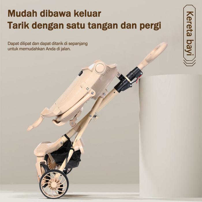 Topborn Stroller Kereta Bayi Dua Arah Bisa Duduk Atau Berbaring Kinerja Biaya Tinggi Roda Stroller - St02 Hitam