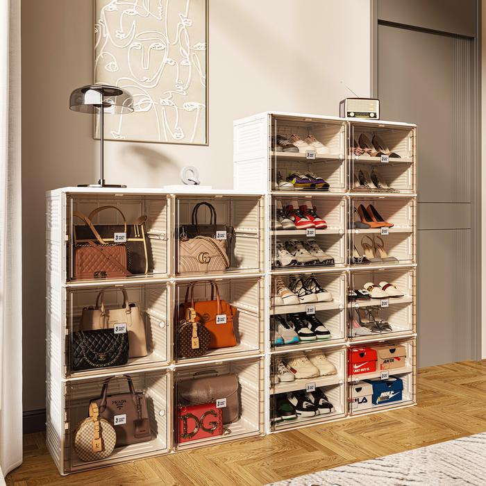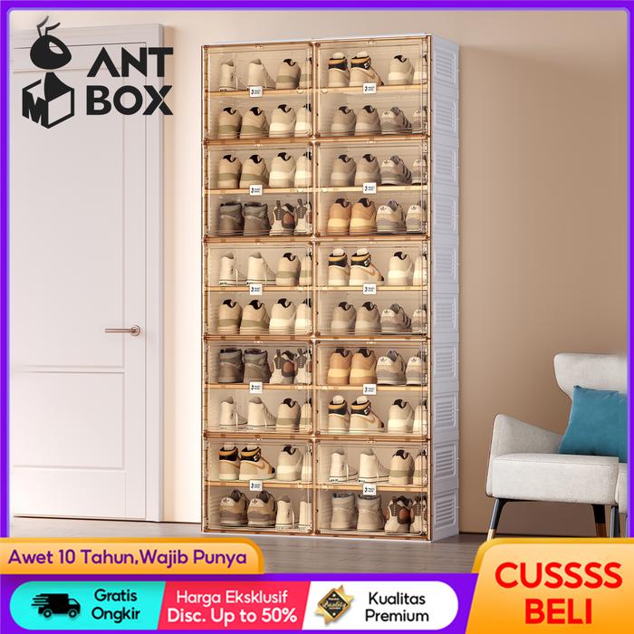Antbox Rak Sepatu 2 Tingkat Transparan -Kotak Sepatu Lipat Minimalis Dari Akrilik Untuk Penyimpanan Serbaguna Tertutup L