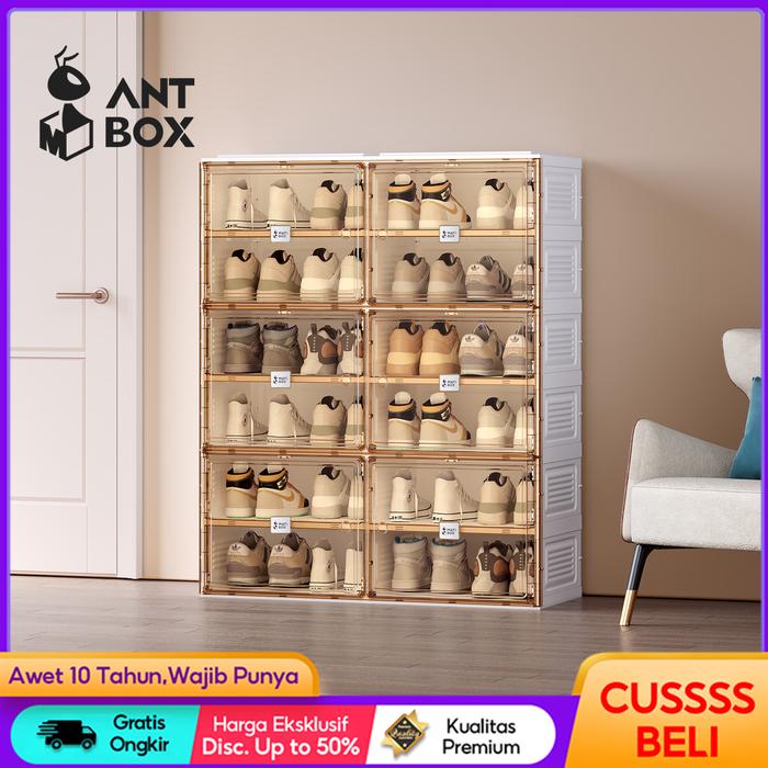 Antbox Rak Sepatu Lipat Transparan Kotak Sepatu Dan Lemari Sepatu Serbaguna Untuk Penyimpanan Anti Debu Akrilik Desain M
