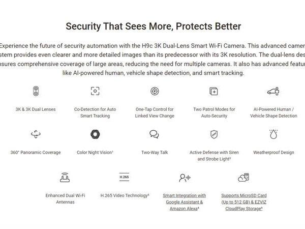 EZVIZ H9C DUAL-LENS 3K (5MP + 5MP) SMART HOME WI-FI PAN TILT IP CAMERA H9 C - MICROSD 32GB