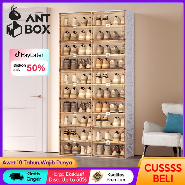 Antbox Rak Sepatu Transparan Lemari Sepatu Lipat Estetik Untuk Penyimpanan Sepatu Bahan Akrilik Tebal Anti Debu Cocok