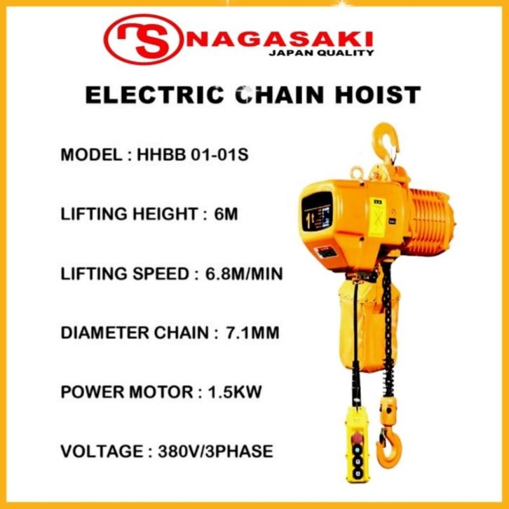 ELECTRIC CHAIN HOIST KAPASITAS 1 TON × 6 MTR 380V/3 PHASE NAGASAKI JAPAN QUALITY