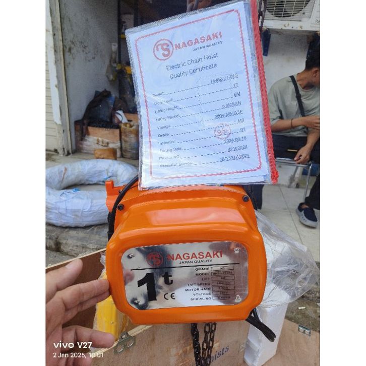 Electric chain hoist kapasitas 1 ton x 6 mtr 380V/3 phase nagasaki japan quality